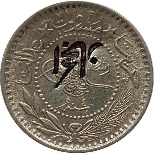 | Descrição do anverso | Tughra with Reshat at right. Al Hejaz large countermark |