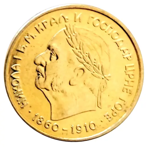 | 正面铭文 | НИКОЛА I Б.М.КРАЉ И ГОСПДАР ЦРНЕ ГОРЕ 1860-1910 (Translation: Nicholas I King and Ruler of Montenegro) |