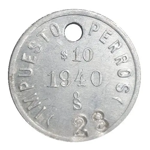 | 表面の銘文 | IMPUESTO PERROS $10 1940 So (Translation: Dog tax $ 10 1940 So (mintmark)) |