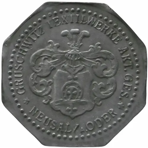 | Légende de l’avers | GRUSCHWITZ TEXTILWERKE AKT. GES. ✿ NEUSALZ a. ODER ✿ |