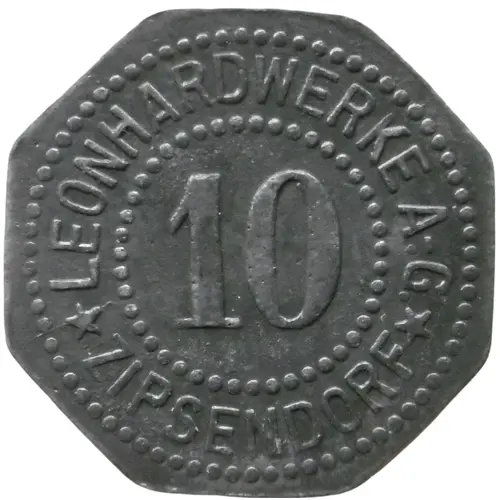| نوشتههای روی سکه | LEONHARDWERKE A.-G. 10 ★ ZIPSENDORF ★ |