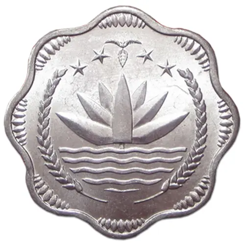 | Obverse description | The National Emblem of Bangladesh: a water lily bordered on two sides by rice sheaves. Above are a three-leaf clover of tea leaves and four stars representing the four principles of the first constitution of Bangladesh in 1972: nationalism, secularism, socialism, and democracy. |