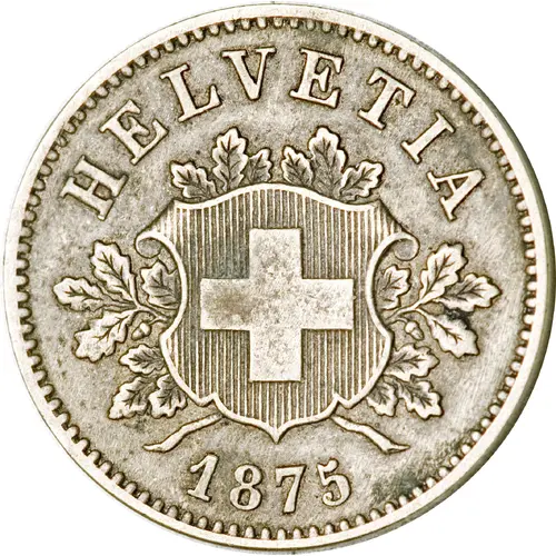 | Chữ khắc mặt trước | HELVETIA 1875 (Translation: Switzerland.) |