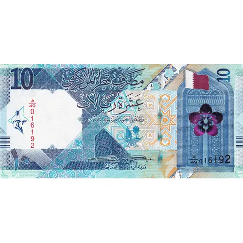 | Reverse lettering | Qatar Central Bank Ten Riyals |