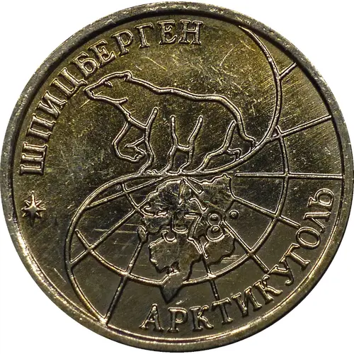 | Leyenda del anverso | ШПИЦБЕРГЕН 78° АРКТИКУГОЛЬ (Translation: Spitsbergen Arktikugol (Arctic Coal)) |