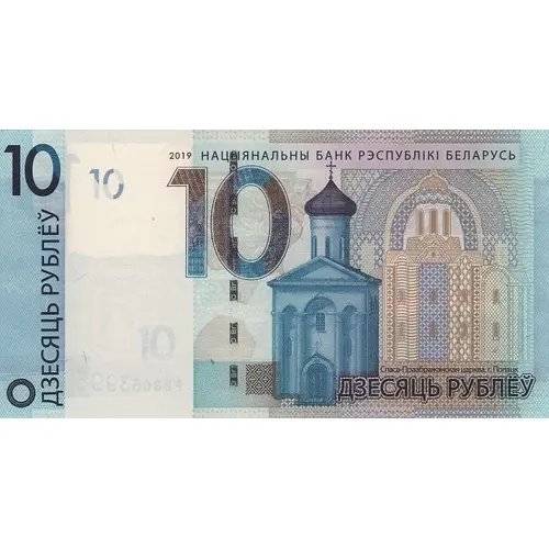 | نوشتههای روی اسکناس | ДЗЕСЯЦЬ РУБЛЁЎ 10 2009 НАЦЫЯНАЛЬНЫ БАНК РЭСПУБЛІКІ БЕЛАРУСЬ ДЗЕСЯЦЬ РУБЛЁЎ (Translation: Ten Rubles, National Bank of the Republic of Belarus) |