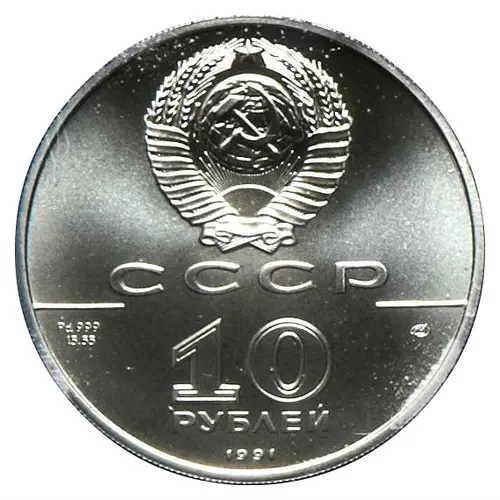 | Obverse lettering | СССР Pd 999 ЛМД 15,55 10 РУБЛЕЙ 1991 (Translation: USSR LMD 10 Roubles) |