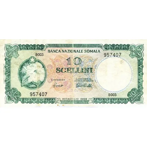 | Obverse lettering | 10 SOMALI SHILLINGS BANCA NAZZIONALE SOMALA 10 SCELLINI MOGADISCIO 10 SOMALI SHILLINGS |