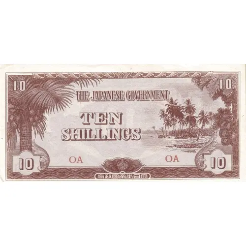 | Надписи лицевой стороны | The Japanese Government Ten Shillings 府政国帝本日大 |
