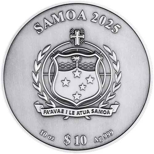 | Legenda del dritto | SAMOA 2025 FA`AVAE I LE ATUA SAMOA 10 oz $10 Ag 999 (Translation: God be the Foundation of Samoa) |