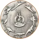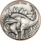 The arms of Vanuatu featuring a Melanesian warrior standing in front of a curved boar`s tooth above a scroll reading `LONG GOD YUMI STANAP`, denomination above, within a ring of different dinosaurs. |