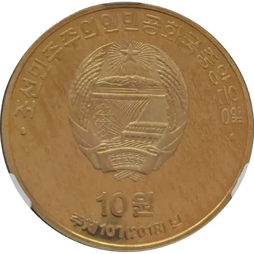 | Ön yüz lejandı | 조선민주주의인민공화국 2018 10원 중앙은행 (Translation: Central Bank of the Democratic People`s Republic of Korea, 10 Won) |