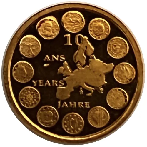 | Opis awersu | (fr) La carte de l`Union Européenne entourée de l`avers de la pièce de 2 euro des douze pays membres. |