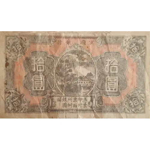| Légende de l’avers | 拾 冥國銀行 拾圆 憑票即付票面所例銀圓額 (Translation: Ten. Bank of the Hell. Ten Yuan. Payable on demand, in silver yuan as shown on the note.) |