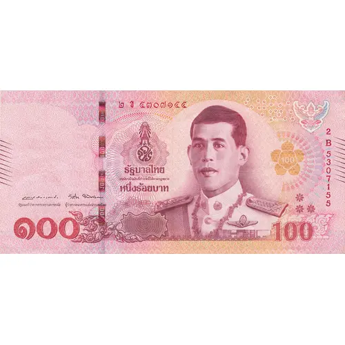 Image of H.M. King Vajiralongkorn with denomination 100 below |