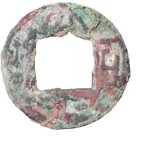 | Descrição do anverso | The Ancient `Zhuan` (Seal Script) type Chinese of the coin`s name around the square hole |