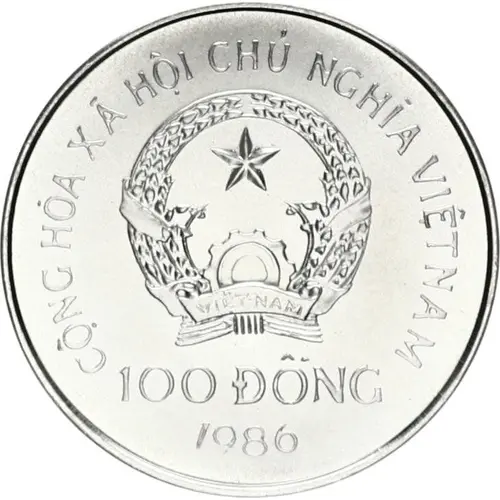 | Chữ khắc mặt trước | CỘNG HÒA XÃ HỘI CHỦ NGHĨA VIỆT NAM 100 ĐỒNG 1986 (Translation: Socialist Republic of Vietnam) |