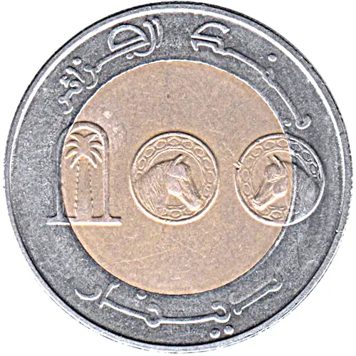 | Obverse lettering | بنك الجزائر دينار 100 (Translation: Bank of Algeria 100 Dinars) |