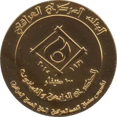 البنك المركزي العراقي الذكرى الرابعة والثمانين لتأسيس سلطة النقد العراقية لجنة العملة العراقية ١٩٣١-٢٠١٥ ١٠٠ دينار (Translation: Central Bank of Iraq 84th anniversary of the establishment of the Iraqi Monetary Authority Iraqi Currency Board 2015-1931 100 Dinars) |