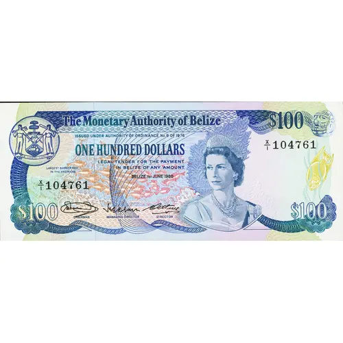 The Monetary Authority of Belize One Hundred Dollars $100 |