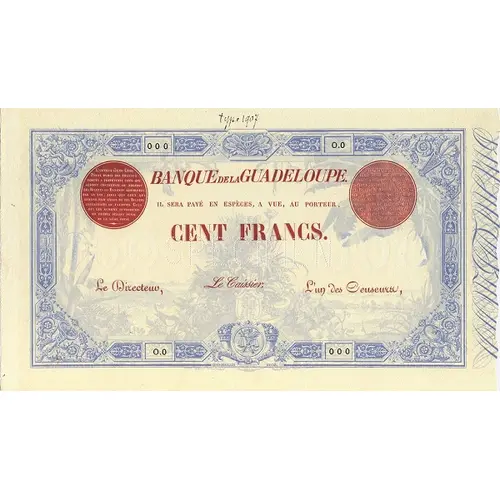 (Translation: Bank of Guadeloupe will pay in cash to bearer Hundred Francs)