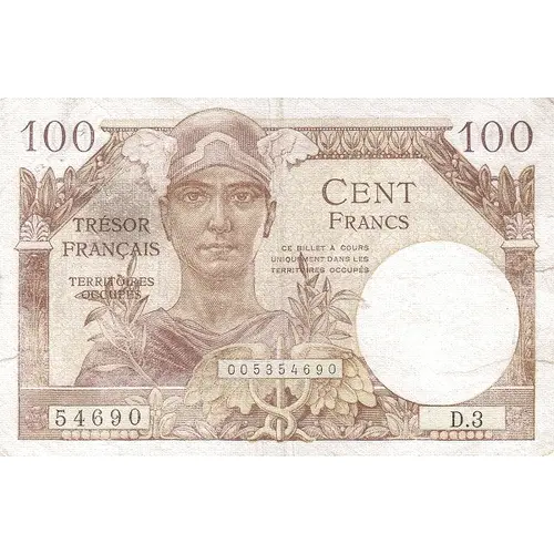 100 | 100 CENT FRANCS TRESOR FRANCAIS CE BILLET A COURS UNIQUEMENT DANS LES TERRITOIRES OCCUPES TERRITOIRES OCCUPES |