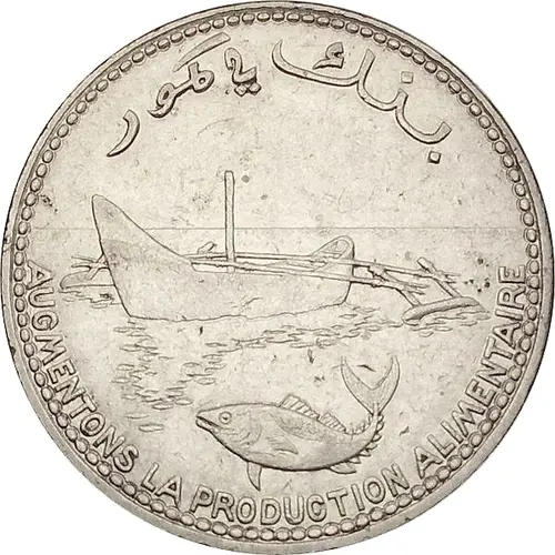 | توضیحات روی سکه | A boat, outrigger canoe, and a fish. Legend around. |