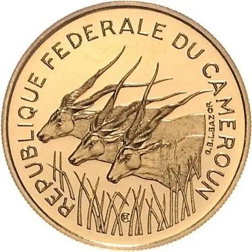 | نوشتههای روی سکه | REPUBLIQUE FEDERALE DU CAMEROUN G.B.L.BAZOR CR (Translation: Federal Republic of Cameroon.) |
