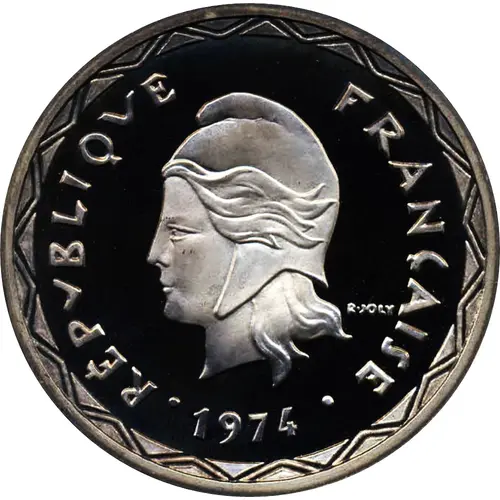| Opschrift voorzijde | RÉPVBLIQVE FRANÇAISE R·JOLY 1974 (Translation: French Republic) |