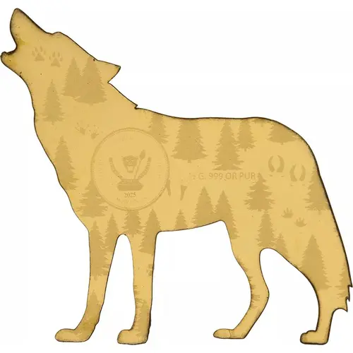 REPUBLIQUE DEMOCRATIQUE DU CONGO JUSTICE PAIX TRAVAIL 2025 100 FRANCS 1/2 G. 999 OR PUR (Translation: Democratic Republic of the Congo Justice Peace Work 1/2 g 999 fine gold) |