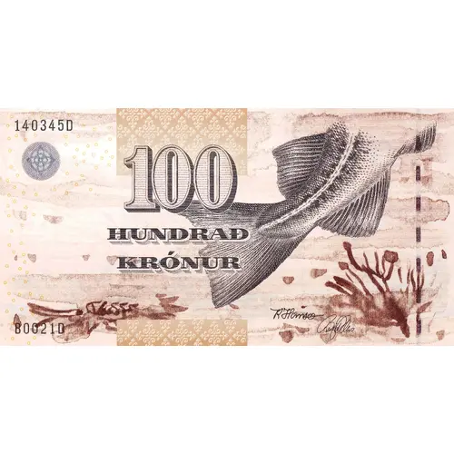 | Opis líce | 100 HUNDRAÐ KRÓNUR (Translation: One Hundred Krónur) |