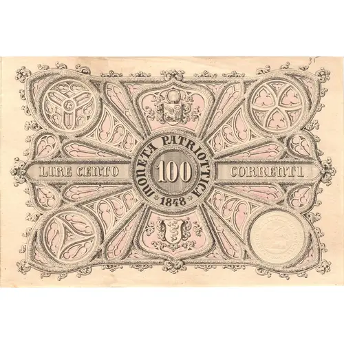 | Chữ khắc mặt trước | MONETA PATRIOTTICA LIRE CENTO 100 CORRENTI 1848 |