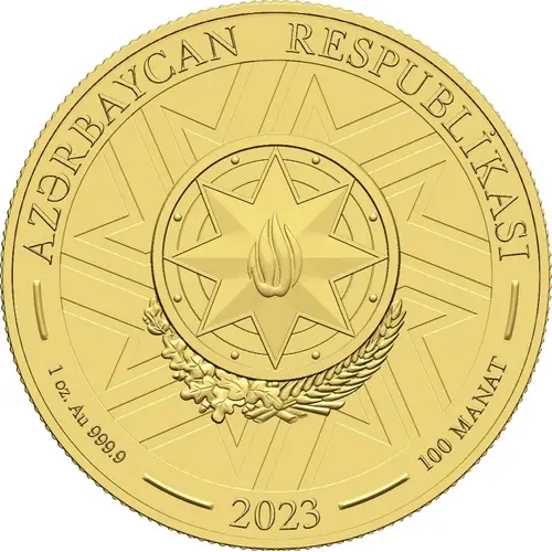 | 正面铭文 | AZƏRBAYCAN RESPUBLİKASI 1oz. Au999.9 2023 100 MANAT (Translation: Republic of Azerbaijan) |