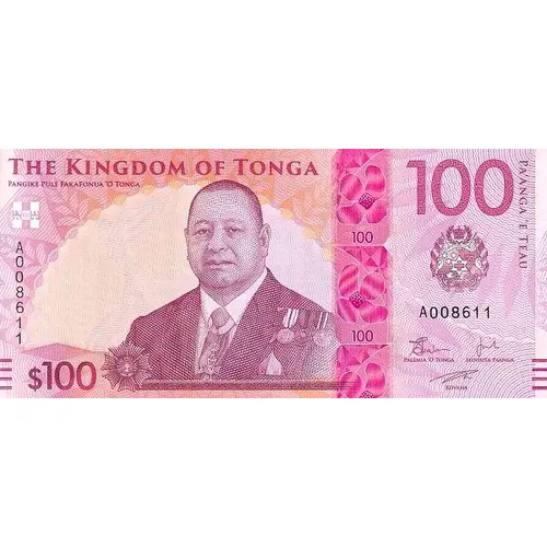 | Descripción del anverso | Cherry red and white. English and Tongan text; medallion; King Tupou VI; Tongan coat of arms. |
