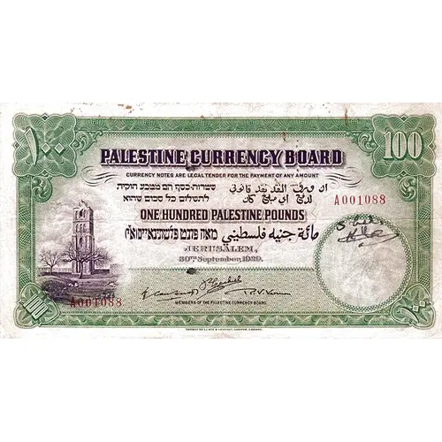 Obverse description White Tower of Ramle, also known as the Ramle Crusaders` Tower, the Tower of the Forty Martyrs, and the White Mosque. `Palestine Currency Board`, Denomination in English, Hebrew and Arabic.