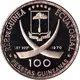| Opschrift voorzijde | REP.DE GUINEA ECUATORIAL LEY 9999 1970 100 PESETAS GUINEANAS (Translation: Republic of Equatorial Guinea .9999 Purity 100 Guinean Pesetas) |