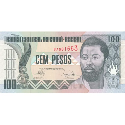 | Ön yüz lejandı | BANCO CENTRAL DA GUINÉ-BISSAU 100 CEM PESOS 1 DE MARÇO DE 1990 (Translation: Central Bank Of Guinea-Bissau One Hundred Pesos March 1st., 1990) |