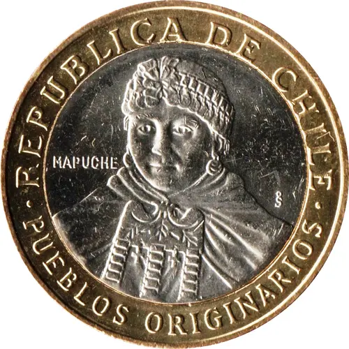 | Chữ khắc mặt trước | REPUBLICA DE CHILE MAPUCHE So · PUEBLOS ORIGINARIOS · (Translation: Republic of Chile Native peoples) |