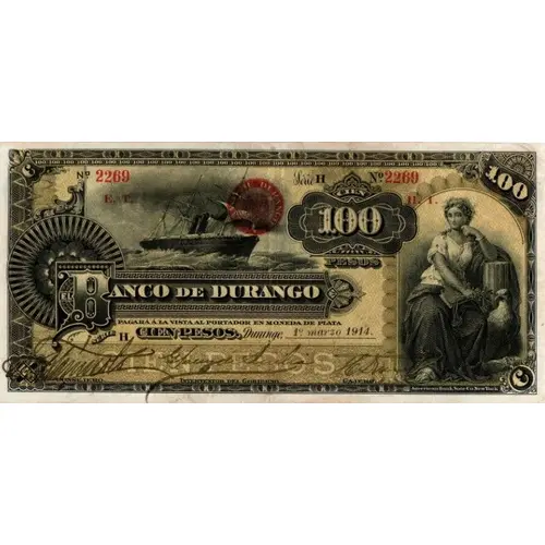 | Legenda del rovescio | Banco de Durango 100 Pesos (Translation: Bank of Durango 100 Pesos) |