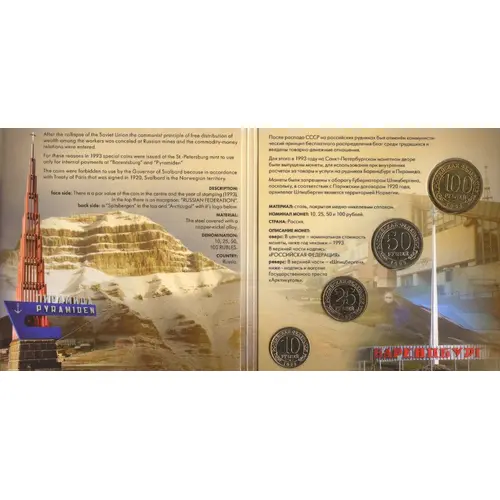 | نوشتههای پشت سکه | РОССИЙСКАЯ ФЕДЕРАЦИЯ 100 РУБЛЕЙ ММД 1993 (Translation: Russian Federation 100 Roubles MMD) |