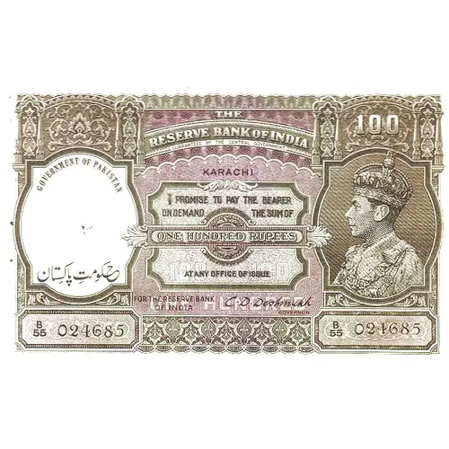 | Obverse lettering | The Reserve Bank of India Karachi |
