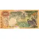 Denomination and bank name in Sinhala, Tamil, and English. Two Ceylon Hill Myna, the grackle bird (Gracula Ptilogenys) and above them the golden palm civet cat (Paradoxurus Zeylonensis) atop a Ceylon wild Mango tree (Mangifera Zeylanica). At centre appear the Talipot palm (Corypha Umbraculifera) and in the lower half, between the palm and pair of buds, the moderately venomous Ceylon green pit viper (Trimeresurus Trigonocephalus), set against a scenic background. |