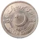 | Ön yüz açıklaması | The waxing crescent moon and five-pointed star facing North West in rising position is in the center. The periphery on the top of the crescent star is inscribed in the wording `ISLAMI JAMHORIA PAKISTAN`, `اسلامہ جمہوریہ پاکستان` in Urdu script. Below the crescent and at the top of two springs of wheat with arms curved upward, there is the year of issuance 2021. The face value of the coin in numeral “100” in bold letters and `RUPIA`, `روپیہ` in Urdu script are written on the right and left sides of the crescent star respectively. |