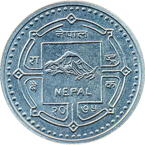 توضیحات روی سکه Regular design with Mount Everest in middle