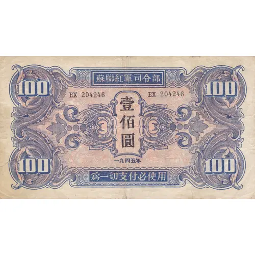 正面描述 Blue on pink underprint. Black vertical denomination, black serial numbers.