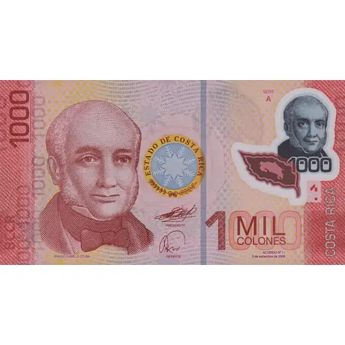 | 表面の銘文 | ESTADO DE COSTA RICA 1 MIL COLONES BRAULIO CARRILLO COLINA (Translation: Costa Rica state 1 Thousand Colones Braulio Carrillo Colina) |