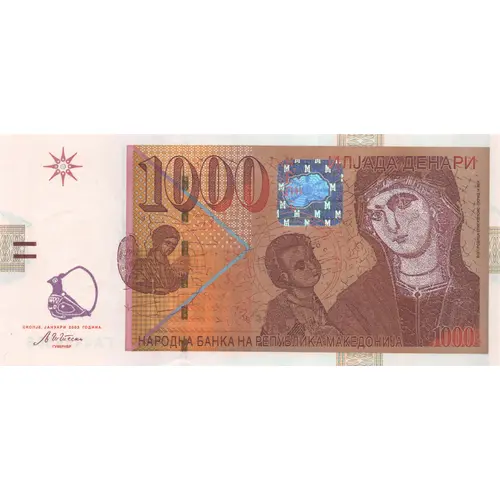 (Translation: National bank of republic of north macedonia One thousand denari)