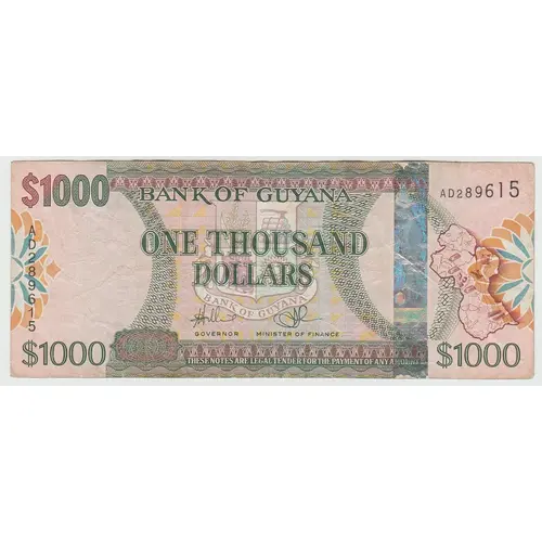 Légende du revers $1000 Bank of Guyana $1000 $ 1000 One Thousand Dollars $ 1000