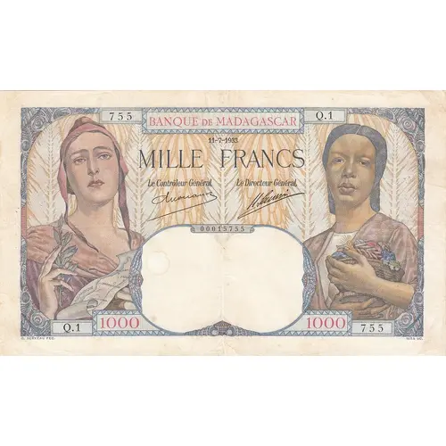 BANQUE DE MADAGASCAR MILLE FRANCS C. SERVEAU FEC. RETA SC. |