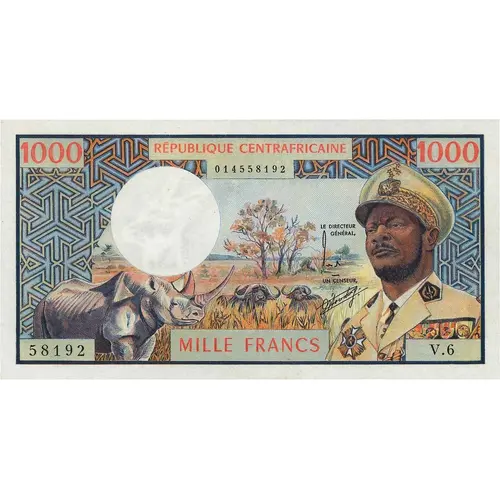 RÉPUBLIQUE CENTRAFRICAINE MILLE FRANCS (Translation: CENTRAL AFRICAN REPUBLIC ONE THOUSAND FRANCS) |